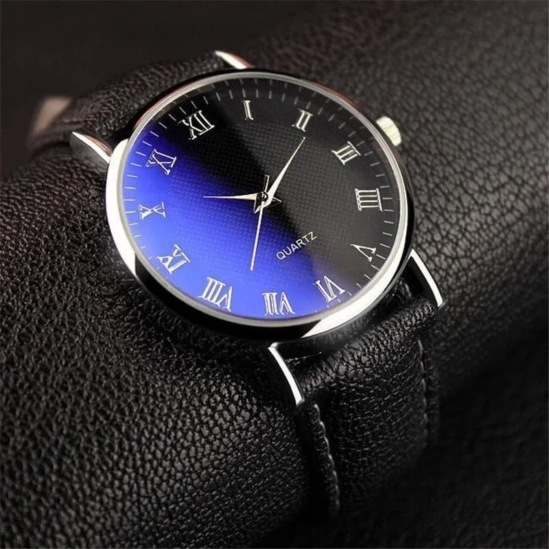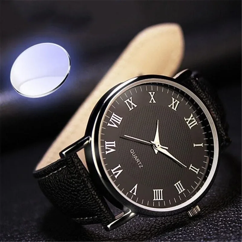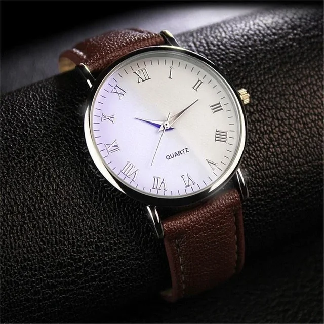 Fashion Men Watches Leather Wrist Watch Roman Scale Belt Quartz Watch Birthday Gifts For Men Women
